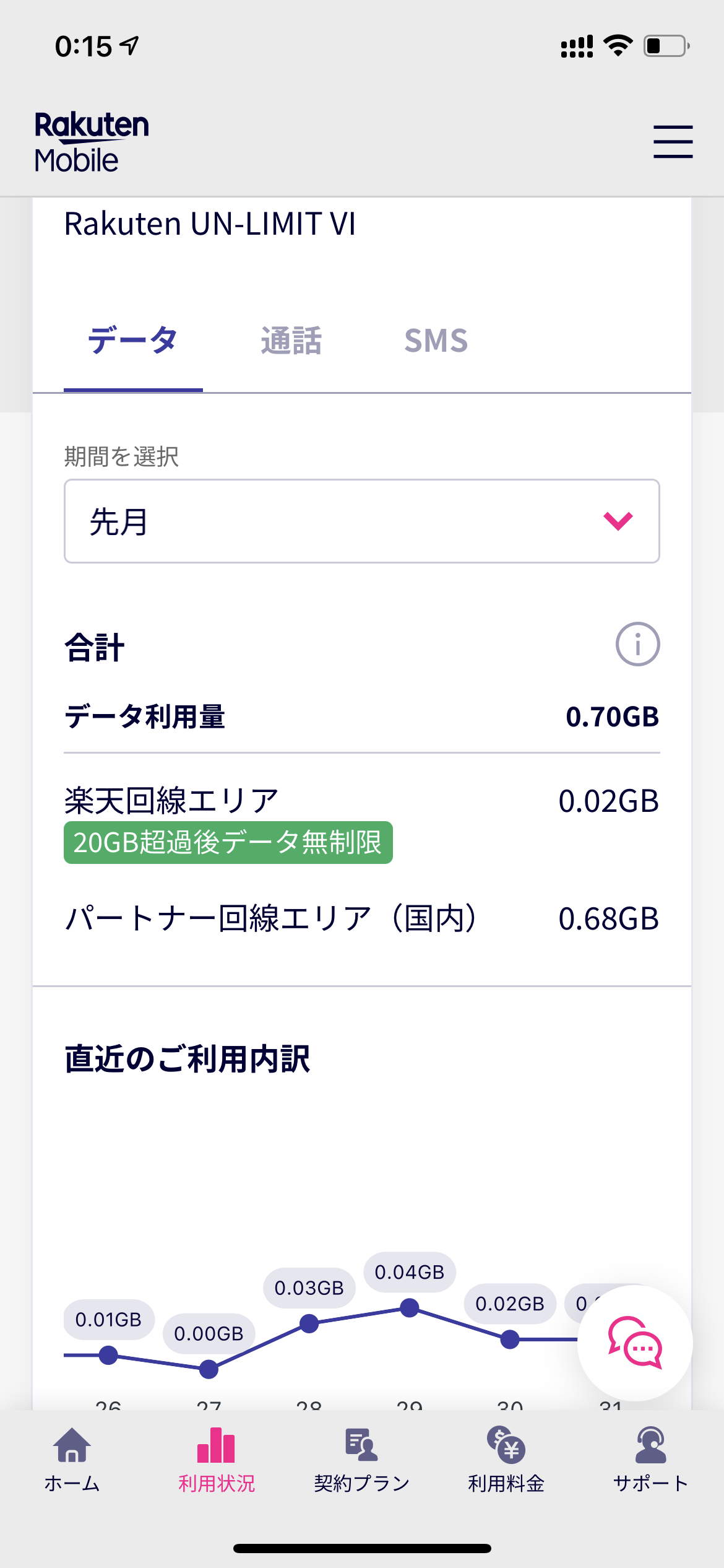 結果は8/1〜8/31の期間で『0.7GB』でした。