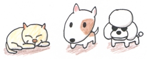 友達です。ブルテリア(?)と猫。