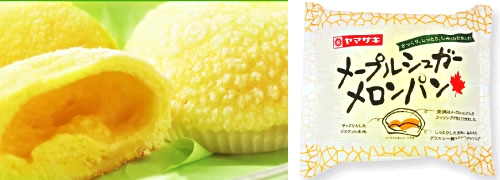 メープル風味のドーム状のパン生地に、バターの香り豊かなビスケット生地をトッピングしたメロンパンです。 実はこのメロンパン、パンの中にクリーム状のメープルシロップ入りフィリングを包んで焼いているので、オーブンの中でフィリングが溶け、グラニュー糖とメープルシロップが生地においしくしみ込んでいるのです。
