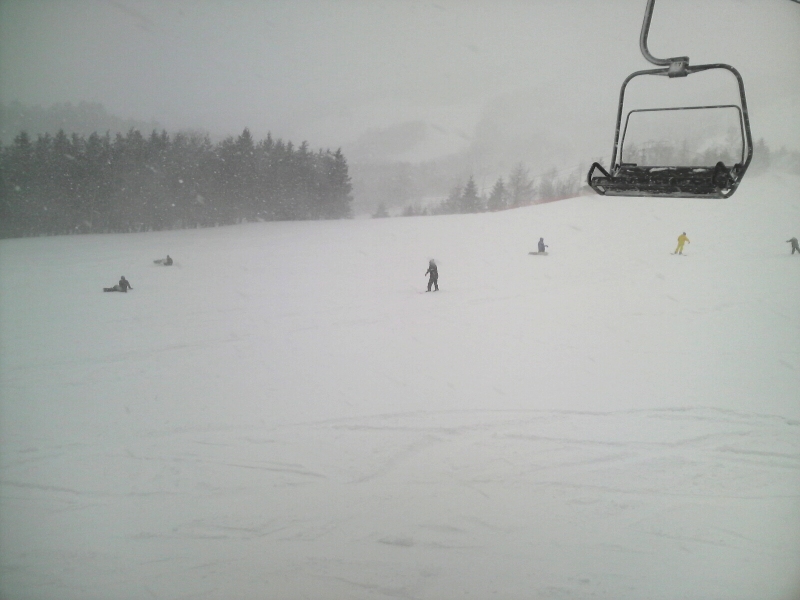 お正月のせいか、雪のせいかガラガラ。もう人のことを気にせずふかふかの上を滑れて良かった。でも雪がずっと降ってた。晴れたら最高だったのに。