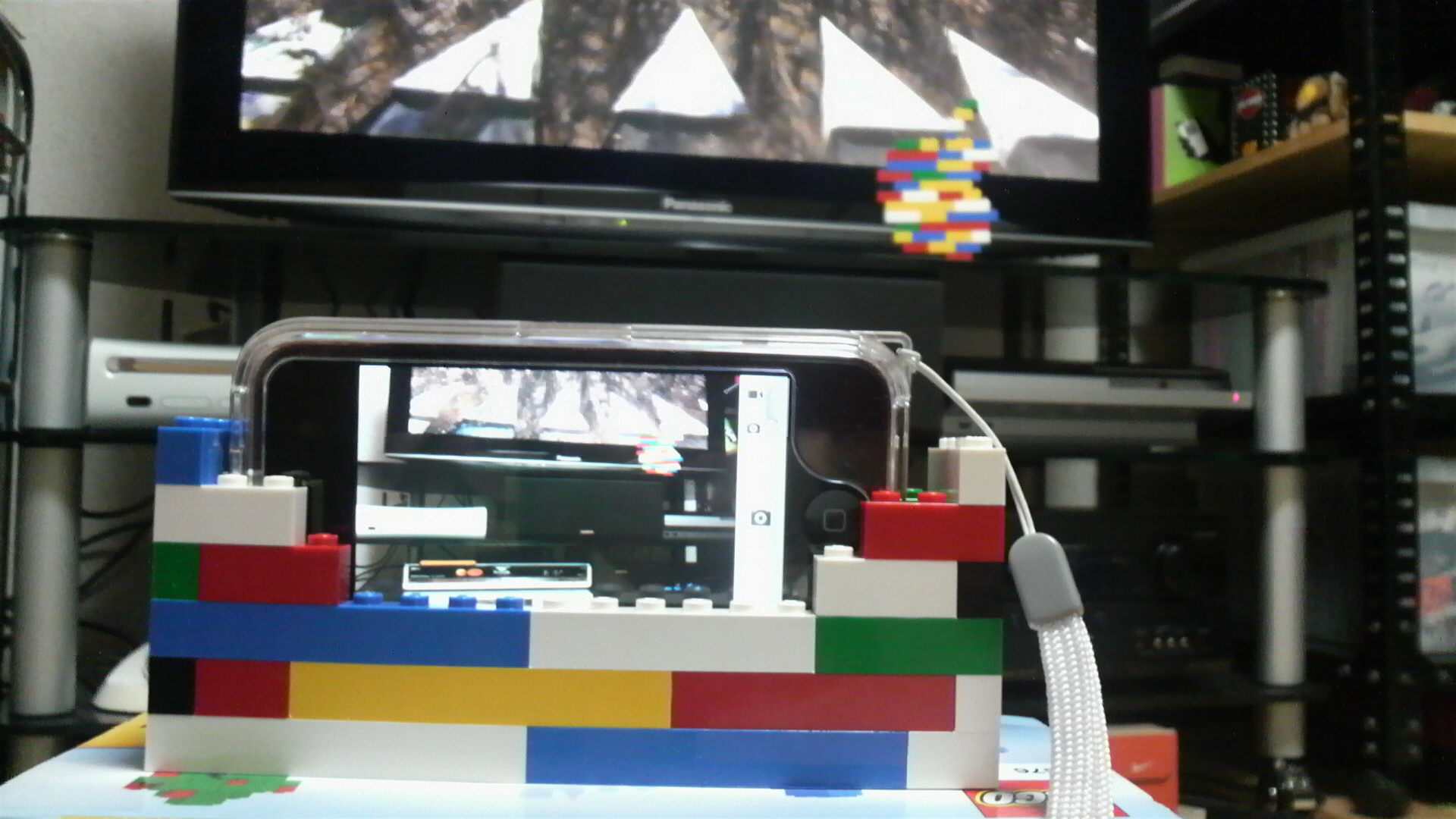 「iPhone用スタンド Powerd by Lego」とでも言いますか、レゴで作っちゃいました。