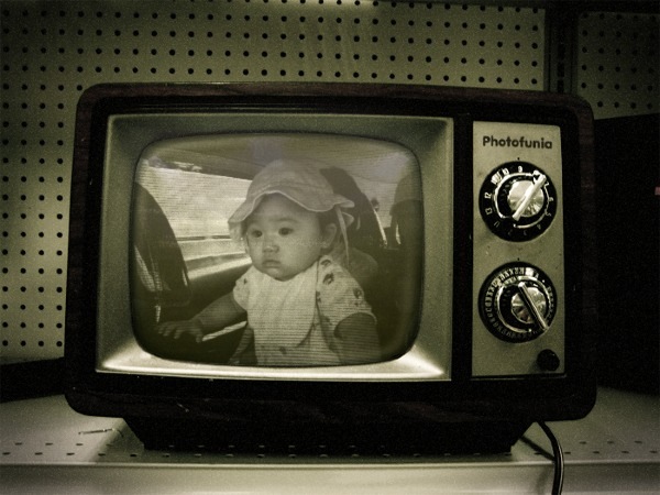 と言う事で、なぜかお気に入りになってしまった「テッテッテ・・・」を言いながら車に乗ってる姪っ子の写真をテレビと合成です。
