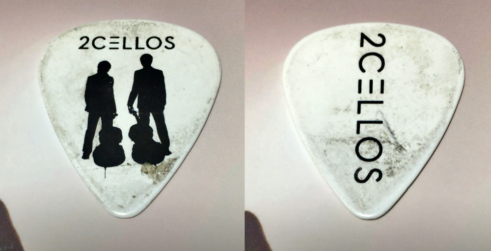 チェロ奏者なのにピック?と思うかもしれませんが、1曲ピックを使う曲があって(ギターのカッティングみたいに弾く)その演奏後に投げた。それを見事にキャッチ。小学校の頃に野球やってて良かった。