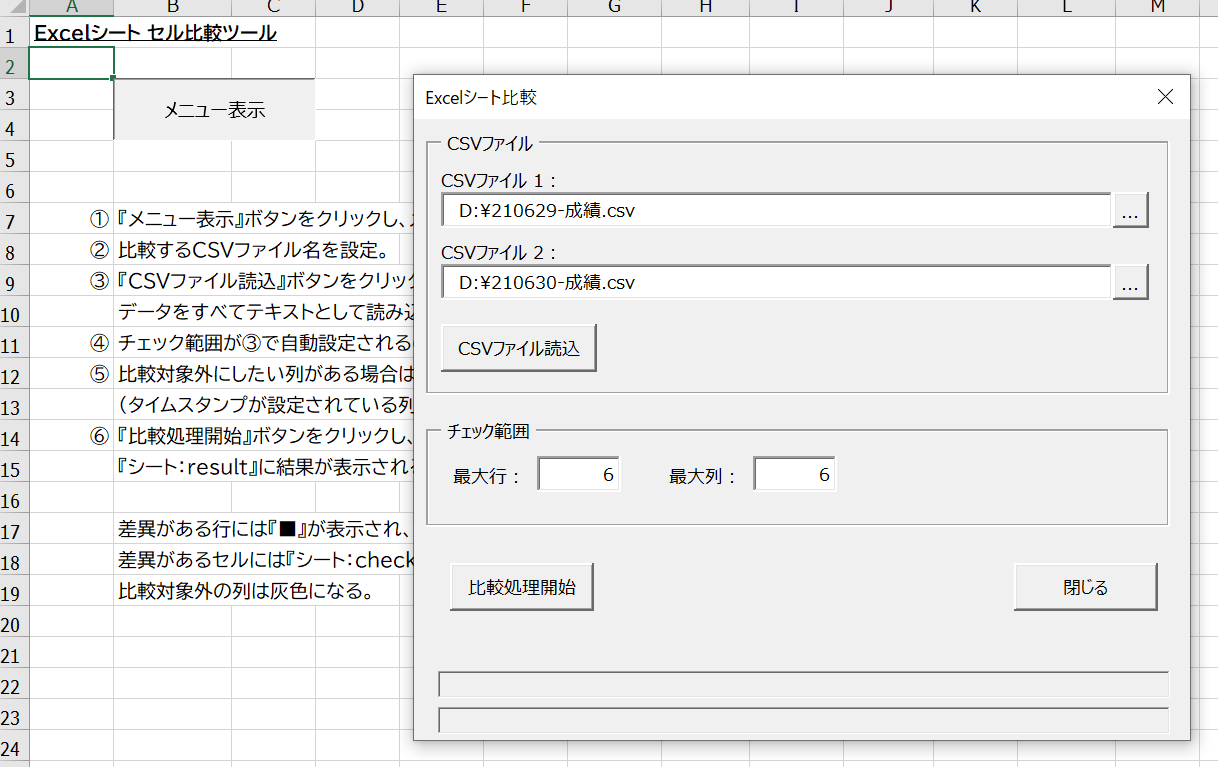 『Excelシート CSVファイル セル比較ツール』を作ってみた