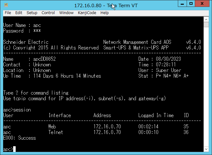 ¥µ¡¼¥Ð¡¼¤Ëtelnetµ¡Ç½¤¬¤Ê¤«¤Ã¤¿¤Î¤ÇTeraTerm¤Î¥Ý¡¼¥¿¥Ö¥ëÈǤò¥À¥¦¥ó¥í¡¼¥É¤·¤Æ¡¢¡Öttermpro.exe¡×¤ò»ÈÍÑ¡£
