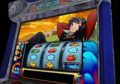 スロットの「俺の空」。普通は上の方に液晶ディスプレイがあるのだが、この機種はリールを囲むように液晶が配置されている。見た目のインパクトがある。どんな感じかは画像をクリックしてみて(ゲーム画面のスクリーンショットだけど)、枠のところが液晶です。