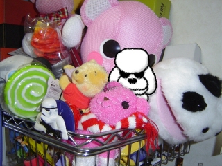 厳密に言えばカゴだけど。ぬいぐるみたちにまぎれてる。