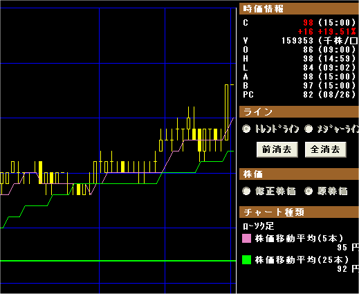 資金は30万円。ちなみに現在の資産残高は-1000円くらい。初めて買ったライブドア(4753)が1日で+6000円くらいなったので、楽勝だぜって思ってたらぜんぜん甘かった。勝ち負けを繰り返し、今の状態に。これからがんばります。