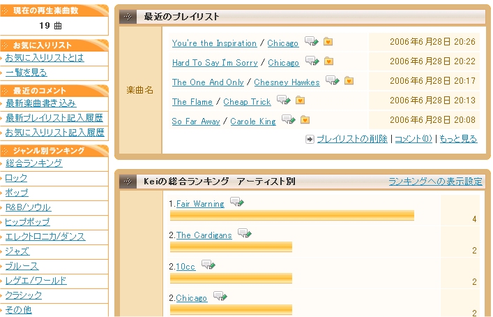 さらにそのリンクをたどると、アーティストページやコミュニティやその曲を聴いた人やランキングなど、いろいろと情報が載ってる。